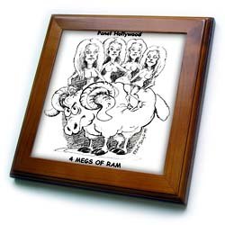 FOR MEG RYAN FANS, 4 MEGS OF RAM Framed Tile is measuring 8w x 8h x .75d. Made of solid wood with predrilled keyhole for easy wall mounting.Framed tile comes with 6w x 6h ceramic gloss tile attached to the wood frame.