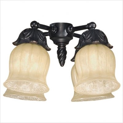 FLGC-705-7 Features: -Four light fan lighting kit. -Family: Gossamer. -Ebony finish. -Cream ribbed glass (included). -Use for the gossamer fan. Specifications: -Accommodates (4) 60W C bulb type. -120 Volts.