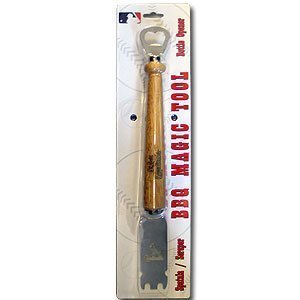 This MLB 3 in 1 BBQ tool features a stainless steel grill scraper and spatula at one end and a convenient bottle opener on the other.